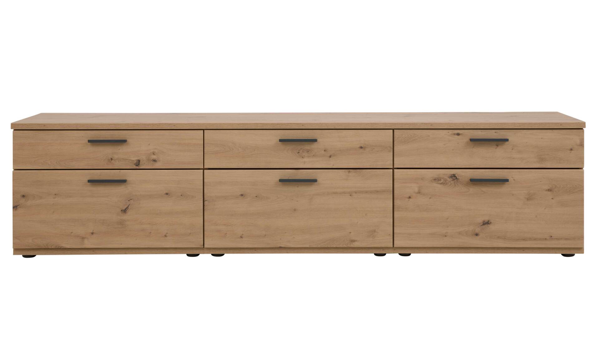 • Lowboard-Kombination LT135.642: Drei Einzelelemente mit je einer Schublade und einem Auszug – geeignet für TV-Geräte bis 65 Zoll. Maße je ca. 135 x 55 x 45 cm (BxHxT)