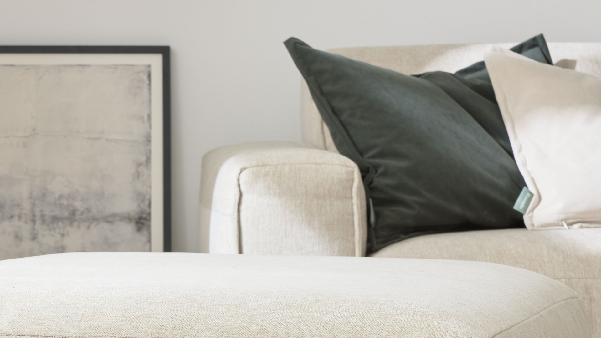 Kissenbezug aus mattem Samt mit umlaufender Steppnaht und verdecktem Reißverschluss