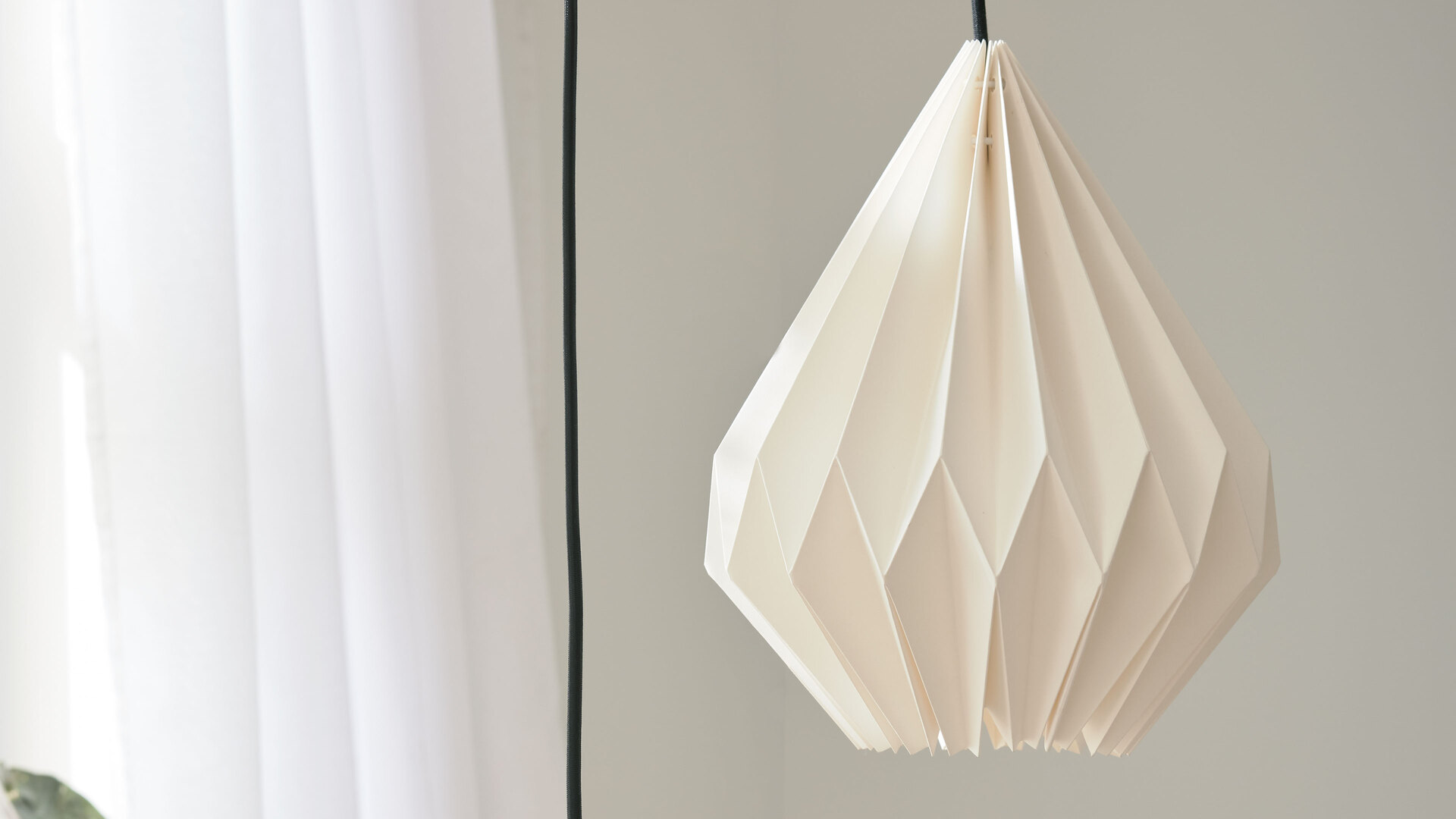 weißes gefaltetes Papier und schwarzes Metall, kombiniert mit schwarzem Kabel