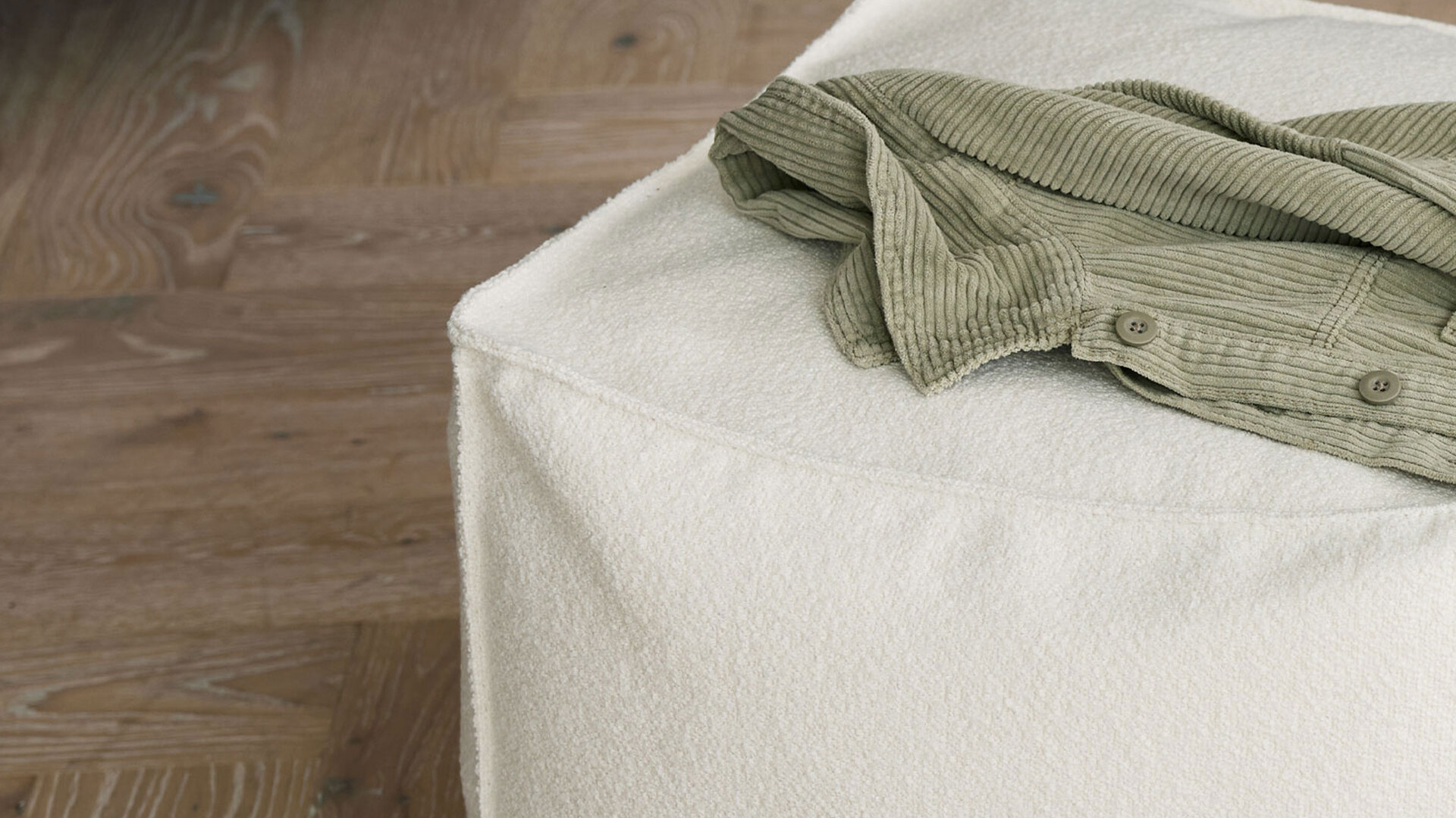 der Pouf ist nicht dimensionsstabil – einfach kräftig ausschütteln und er macht wieder eine gute Figur